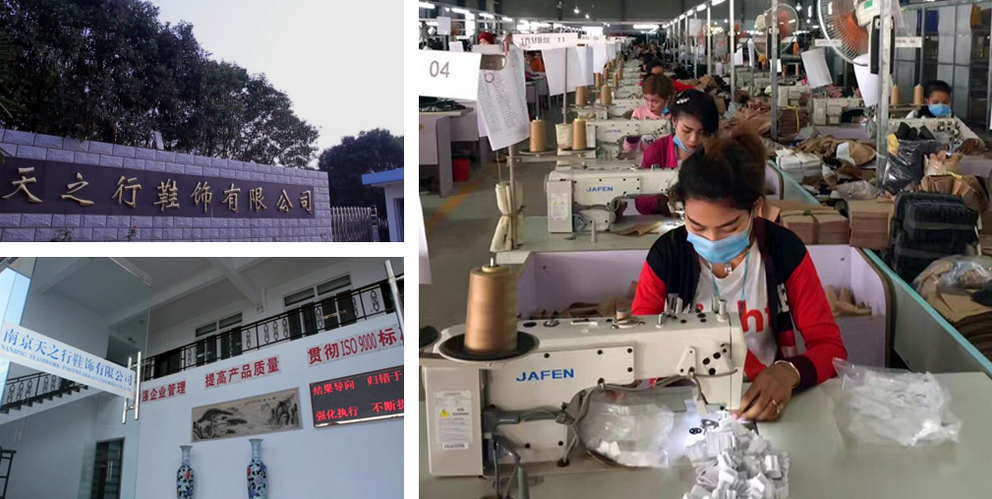 The company has four entities factory, respectively, Nanjing days trip Shoes Co., Ltd., Jiangdu days have factories, Anqing City days have light Textile Co., Ltd., Cambodia days have Footwear Company Limited. The four solid factory has more than 800 employees, each year can produce more than 10 million pairs of home casual shoes, products are sold to the United States, Canada, Britain, France, Italy, Spain and other countries, is the world's major home shoes brand the most important products supplier.